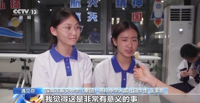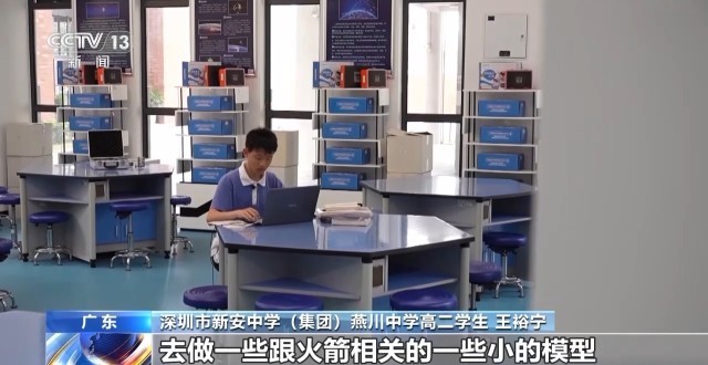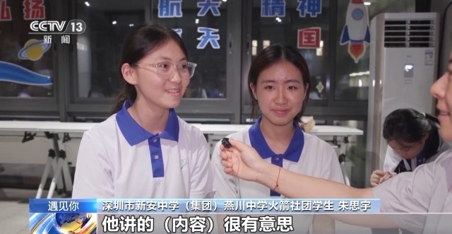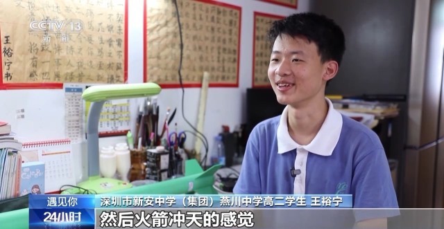 深圳市新安中学(集团)燕川中学高二学生 王裕宁:当时感觉心情特别兴奋,毕竟整个团队做了那么大一个火箭,而且是头一回发射那么大的火箭,象征了我们燕川中学的学子、整个团队以及全国的青少年航天爱好者在航天的道路上不断探索的精神。