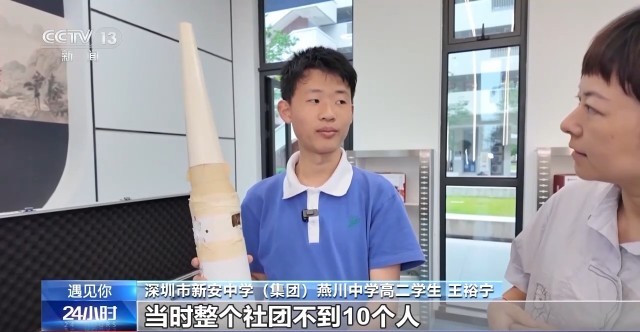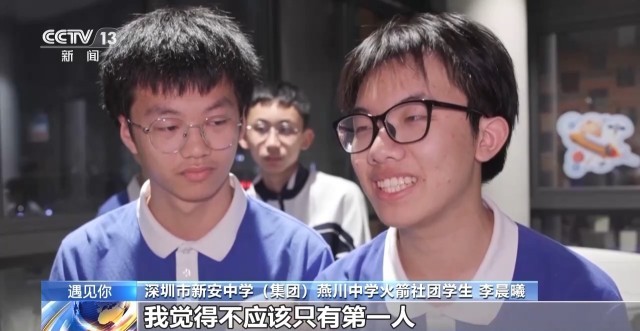 深圳市新安中学(集团)燕川中学火箭社团学生 李晨曦:我觉得不应该只有第一人,我想成为第二人。我想继续去造火箭,让燕川中学火箭社团薪火相传下去。