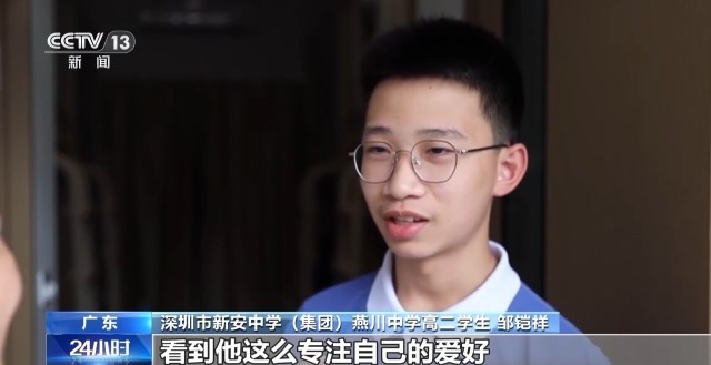 深圳市新安中学(集团)燕川中学高二学生 邹铠祥:他在宿舍的时候一般也是看书,因为他非常努力,然后我会想追上他,看到他这么专注自己的爱好,我也想找到属于自己的爱好。